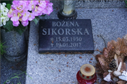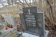 WOŹNA Genowefa z d. Sobotkiewicz [9-39-5], urodzona 16.05.1933 r. w Szwejkowie, w województwie tarnopolskim, na Kresach Wschodnich. W wieku 8 lat straciła ojca. W 1945 r., po ciężkim okresie II wojny światowej, razem z bratem i matką została przesiedlona na Ziemie Odzyskane. Zamieszkała na Dolnym Śląsku w okolicy Lubomierza. W 1951 r. wyszła za mąż za Stanisława, z którym przeżyła 64 lata. Wychowali dwie córki: Zosię i Marysię. Genowefa doczekała się czwórki wnucząt i czterech prawnuczek. Dzieci zawsze były dla niej najważniejsze, obdarzała je bezgraniczną miłością. Bez względu na to, gdzie mieszkała, dzięki swojej niesamowitej wrażliwości potrafiła stworzyć rodzinny dom pełen życzliwości i ciepła. Zawsze kierowała się potrzebami innych, była wsparciem dla bliskich. Dzieliła się ogromną wiedzą, doświadczeniem i umiejętnościami, które posiadała; swoją postawą przekazywała najważniejsze wartości. Ostatni okres życia, ze względu na wiek i zdrowie, spędziła blisko córki Zosi, w Goleniowe. Po dwóch latach ciężkiej choroby odeszła do wieczności opatrzona sakramentami świętymi. Pozostaje w pamięci jako wspaniała Mama, ukochana Babcia i Prababcia. Zmarła 12.09.2017 r. (Źródło: informacja od rodziny odczytana na pogrzebie)