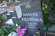 ZIELIŃSKA Danuta Janina [12-57-7], urodzona 30.03.1932 r. w Stryju. Jeszcze przed wojną, w wieku kilku lat, straciła na skutek choroby mamę. Ojciec wychowywał Ją sam, a po wybuchu wojny, gdy Sowieci wywieźli go do pracy na Sybir, zaopiekowała się Nią rodzina. Ojciec wrócił ze zsyłki po wojnie, ale schorowany zmarł wkrótce w Gliwicach. Danuta pojechała z rodziną na Ziemie Zachodnie, do Wrocławia. Tutaj żyła, pracowała i oddawała się całym sercem rodzinie. W pracy znana była z fachowości, rzetelności i sumienności. Znajomi cenili Ją jako przewodnika po nowościach w kulturze, poddawali się jej turystycznym inspiracjom. Kochała ludzi, zwierzęta. Zła choroba zaatakowała Ją w 2010 r. i stopniowo niszczyła Jej organizm, jednakże Danuta próbowała ukrywać to do końca swoich dni. Dała się poznać jako kochająca, czuła, opiekuńcza Kuzynka i Ciocia. Miała liczne grono koleżanek i kolegów w pracy, z którymi utrzymywała bliskie i serdeczne kontakty towarzyskie i przyjacielskie. Pamiętała zawsze o wszystkich, a wszyscy otaczali ją czułością i szacunkiem. Była prawym Człowiekiem. Zmarła 10.02.2014 r. opatrzona Świętym Sakramentem, otoczona troską rodziny i przyjaciół. (Źródło: tekst odczytany przez ks. Krzysztofa podczas pogrzebu 15.02.2014 r.)