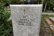 ANDRZEJEWSKA Anna z d. Dragun [12-81-4], urodzona 17.09.1904 r. w Wilnie. Żona Jerzego Andrzejewskiego, gospodyni domowa i matka dwóch synów. Starszy – Wiesław miał dwóch synów, Łukasza i Piotra. Młodszy – Piotr zmarł mając 50 lat, pochowany jest w grobie z prababcią Anną Dragun. Anna Andrzejewska zmarła 20.09.1986 r. (Wiesław Andrzejewski)